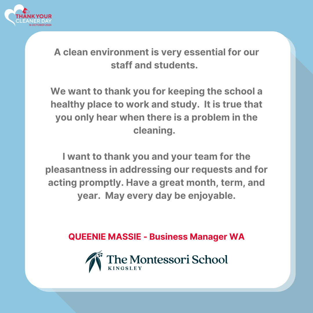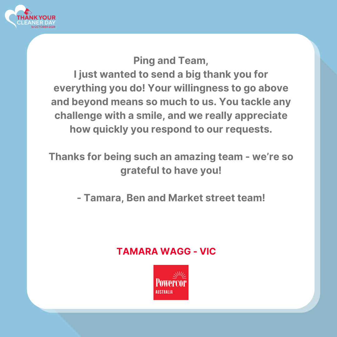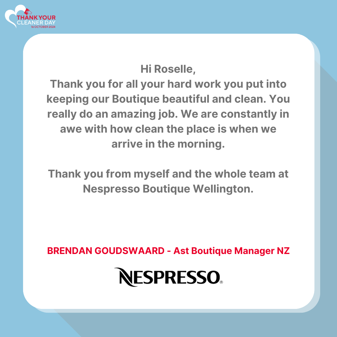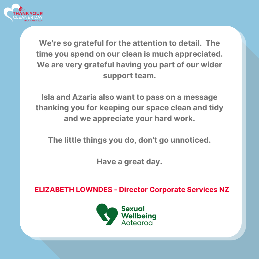 We wanted to take a moment to express our deepest gratitude for the incredible work you do every day. Your dedication and hard work do not go unnoticed. You ensure that our office is always clean, organised, and welcoming, which makes a huge difference in our working life.