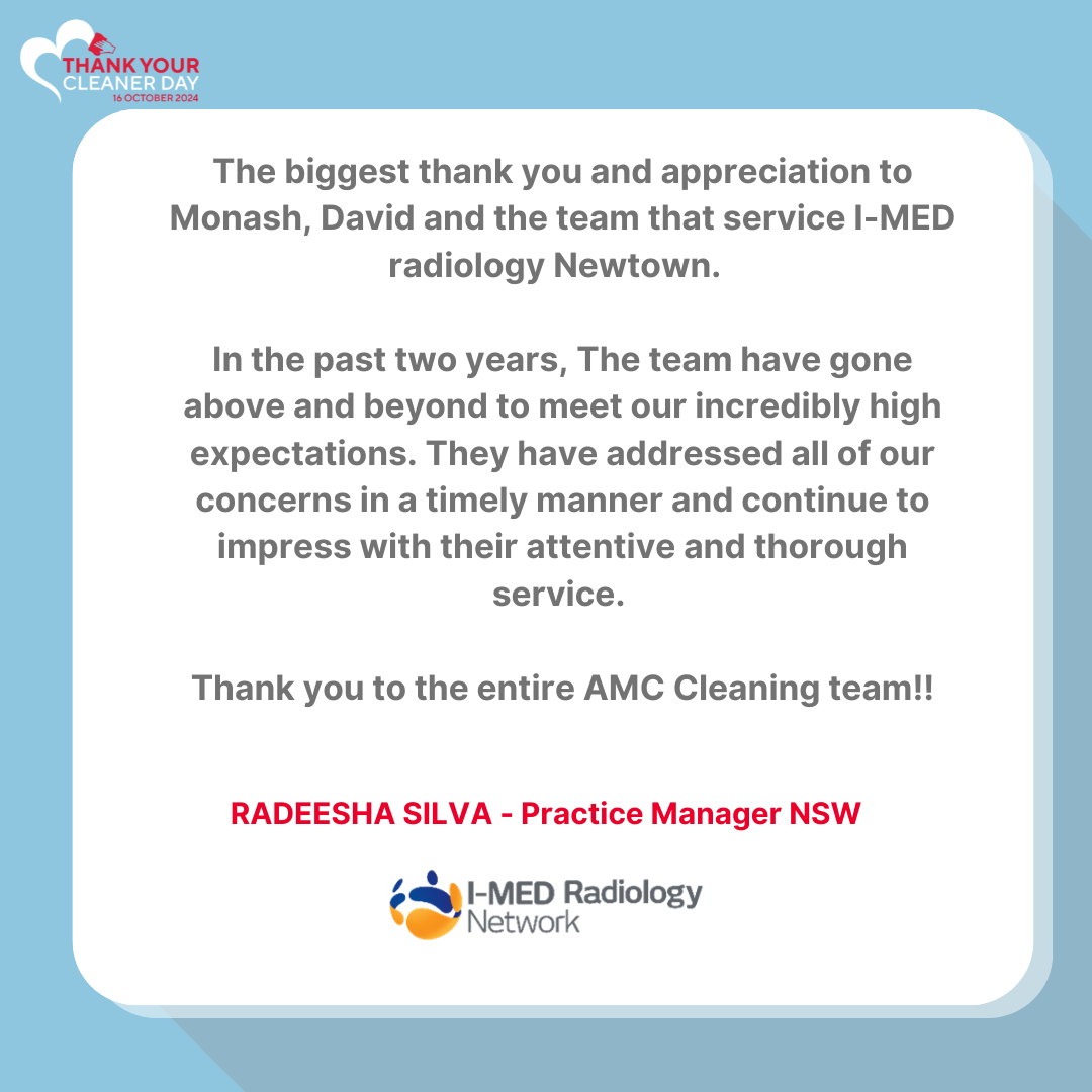 Client Testimonials What Clients Say for AMC Commercial Cleaning