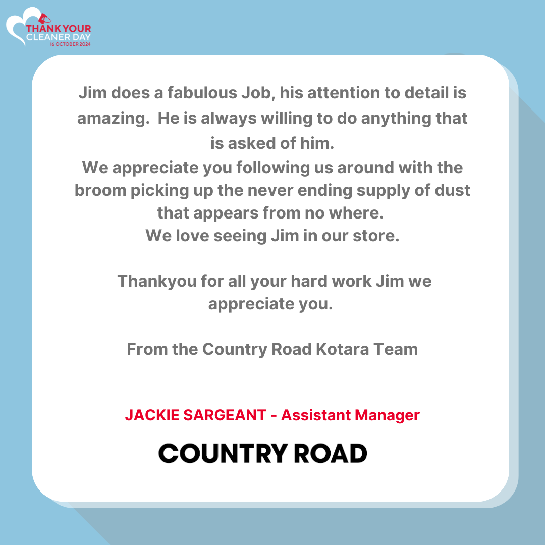 Thank you for the lovely job you do to keep our stor looking clean and fresh
